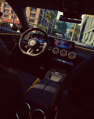 Среди других изменений рулевое колесо AMG Performance, отделанное кожей Nappa и микрофиброй, еще напольные ковриками AMG с желтой контрастной строчкой, подсвеченные пороги и табличка «45 S Final Edition» на центральной консоли.