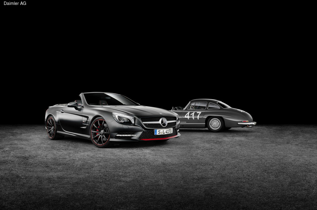 Спецверсия SL Special Edition «Mille Miglia 417». Новинка будет доступна в двух версиях – SL400 c 6-цилиндровым мотором мощностью 333 лошадиных сил SL 500 с 455-сильным V8. В базовую комплектацию вошли ESP с функцией помощи в поворотах Curve Dynamic Assist, адаптивная подвеска колес, система стабилизации кузова Active Body Control и т.д.