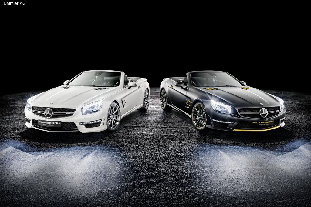Компания Mercedes-Benz отмечает триумфальную победу в Чемпионате мира Формулы-1 выпуском двух эксклюзивных автомобилей SL 63 AMG, в создании которых принимали участие гонщики заводской команды Льюис Хэмильтон и Нико Росберг. В частности, чемпион нынешнего сезона Формулы 1 Льюис Хэмильтон выбрал для своей версии черный цвет кузова, ну а его напарник по команде и извечный соперник на трассе Нико Росберг предпочел белый.