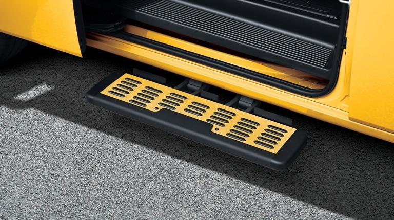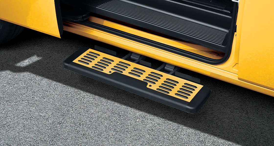Также имеется сигнальная кнопка, которой ребенок случайно оставшийся в салоне может открыть дверь или подать звуковой сигнал. Чтобы детям было легче подниматься и выходить из салона по правому борту предусмотрена выдвижная подножка с электроприводом. Во время остановки других участников движения о посадке/высадке детей будет предупреждать откидной знак «Stop» с электроприводом.