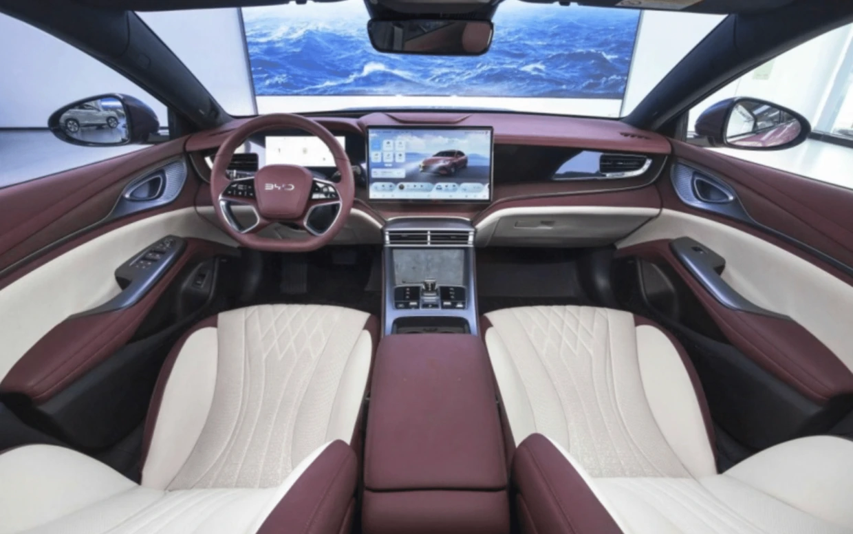 Салон укомплектован цифровой панелью приборов диагональю 10,25 дюйма и 15,6-дюймовый поворотный центральный дисплей. Также в стандартной комплектации заявлены проекционный экран и аудиосистема Seal DM-i от Dynaudio. Работает электроника на платформе Qualcomm 7325 и операционной системе DiLink 5.0.