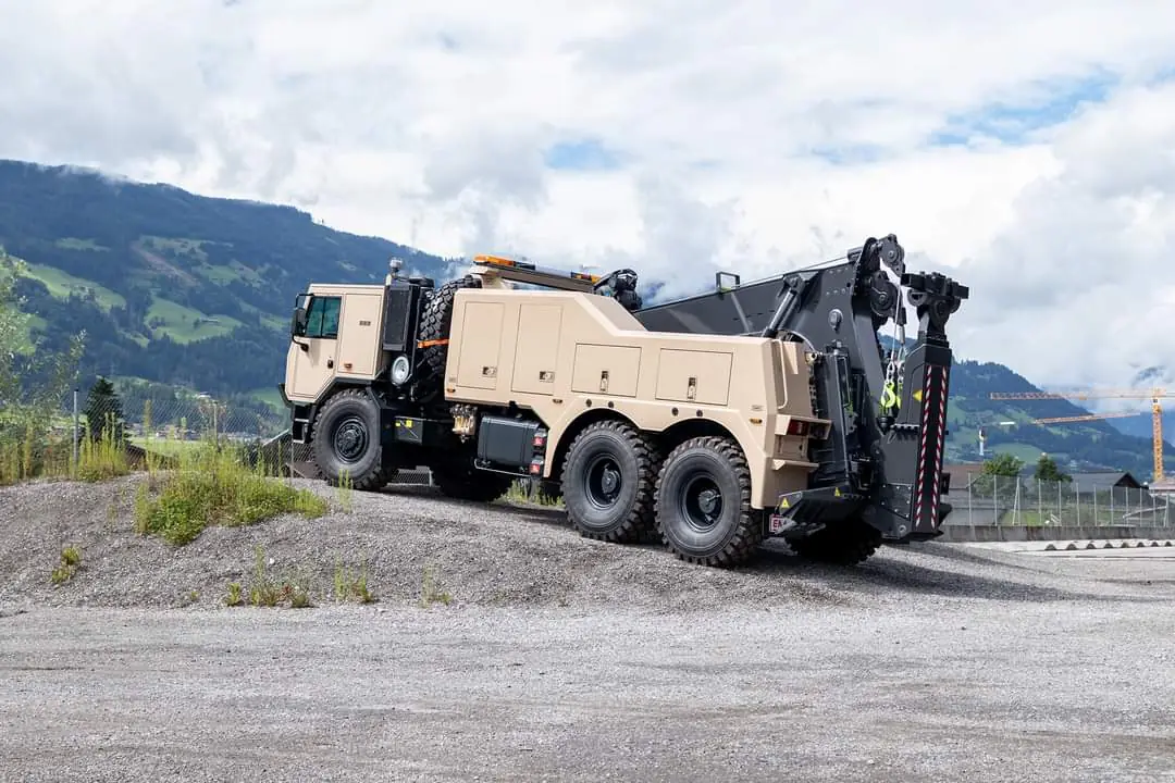 Известный австрийский производитель специальных кузовных надстроек на шасси грузовых автомобилей – компания EMPL Fahrzeugwerk GmbH изготовила интересный тяжелый эвакуатор. В качестве базового шасси была взята полноприводная модель Tatra 815-7 Force колесной формулы 6х6.