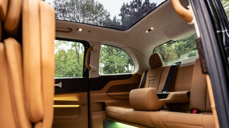 Снаружи VIP-такси почти не отличается от донора – стандартного такси LEVC. Изменения заключаются в двухцветном окрасе, сочетающем черный и темно-серый оттенки, а также надписи VIP, которая заменит более привычное обозначение Taxi на крыше. Куда больше модернизаций произошло в салоне машины.
