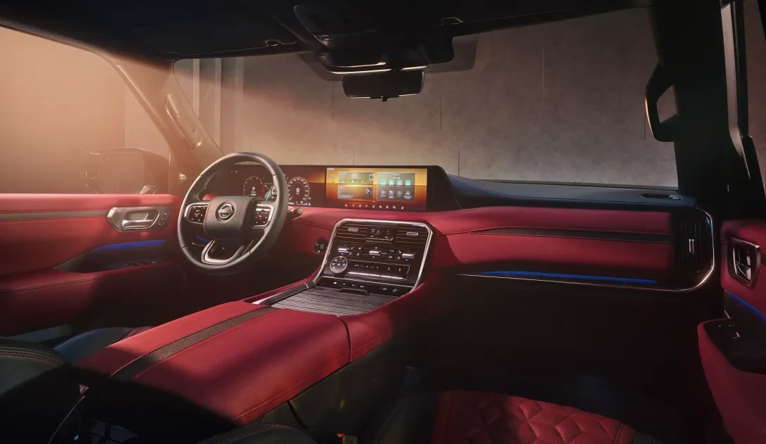 Также есть аудиосистема Klipsch Premium Audio с 12 динамиками, 64-цветное фоновое освещение, камеры кругового обзора и система полуавтономного движения ProPilot. В отделке использована высококлассная кожа, а в качестве акцентов вставки из натурального дерева. Новый Nissan Patrol доступен в версия с 7 и 8 сидениями.