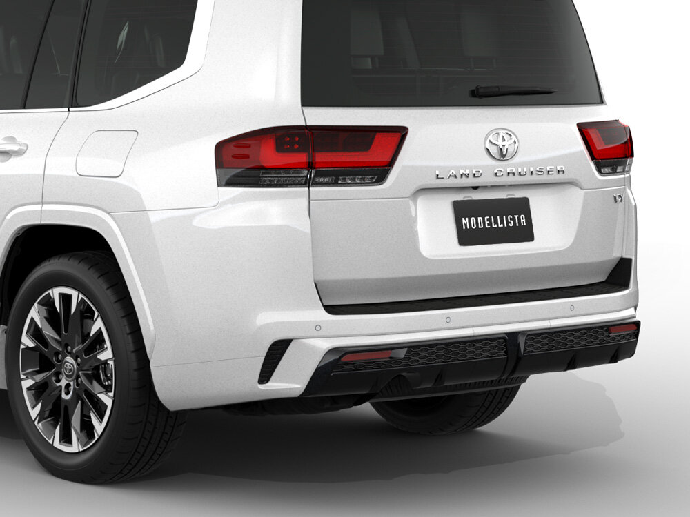 Пакет доработок для Тойота Ленд Крузер 300 оказался довольно скромным. В него вошли передний и задний бамперы, увеличенные передние воздухозаборники и черный задний диффузор. Дополняют новый образ кастомные легкосплавные колесные диски диаметром 21 дюйм, доступные в двух цветовых вариантах – матовом черном и глянцевом черном с серебристым ободом.