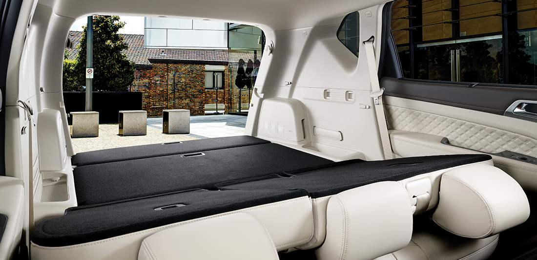 В Южной Корее SsangYong Rexton доступен только с пятиместным салоном. За пределами страны также предлагают трехрядную версию на семь посадочных мест. Объем багажного отделения пятиместной модификации – 784 л и 1977 л при сложенных спинках кресел второго ряда.