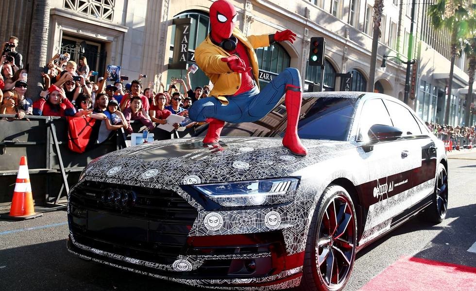 В США во время премьер новой киноленты «Человек-паук: Возвращение домой» показали Audi A8 2018. Флагманский седан Ауди был закамуфлирован, ведь полноценная его презентация состоится 11 июля.