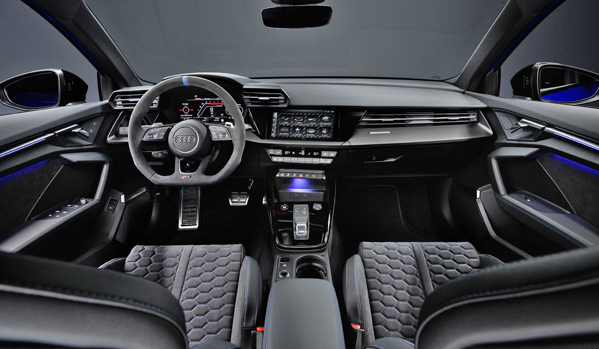 Технически от базовой «эрэски» новый рекордсмен отличается перекалиброванным турбированным 2.5 TFSI и перенастроенной системой выпуска с управляемой электроникой заслонкой. В результате избыточное давление наддува увеличили с 1,5 до 1,6 бар, мощность мотора выросла до 407 л.с., то есть на 7 л.с. Максимальный крутящий момент остался прежним — 500 Нм, но доступен он в более широком диапазоне — 2250 – 5700 об/мин. против 2250 – 5600 об/мин. в базовой версии.