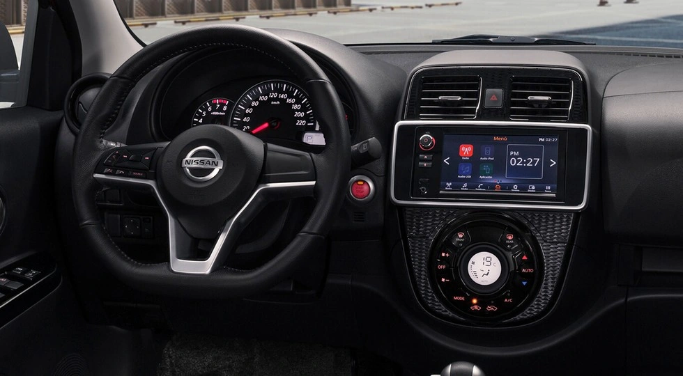 В салоне владельца ждет новое рулевое колесо, позаимствованное у Micra, блок климат-контроля прежней формы и «карбоновая» отделка передней панели. В набор базового оснащения вошли шесть подушек безопасности. Более дорогим версиям достанется камера заднего вида. Камеры кругового обзора и системы мониторинга слепых зон, как у европейского собрата, мексиканскому March не достались.