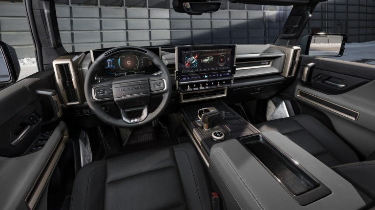 Пятиместный салон GMC Hummer SUV практически полностью унифицирован с пикапом. В оснащение вошла 12,3-дюймовая цифровая приборная панель и мультимедийная система с 13,4-дюймовым экраном. Электрический внедорожник получил ряд систем помощи водителю, включая полуавтономную систему Super Cruise. Также модели достался вместительный багажный отсек. Его объем не раскрывают, но при длине кузова 5500 мм багажа поместится много.
