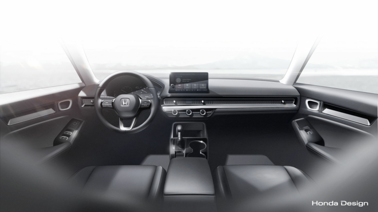 Изображение новой Хонда Сивик 2022 модельного года интересно тем, что до сих пор производитель показывал только прототип модели в ярко-оранжевом цвете. Серийный автомобиль официально пока не дебютировал.