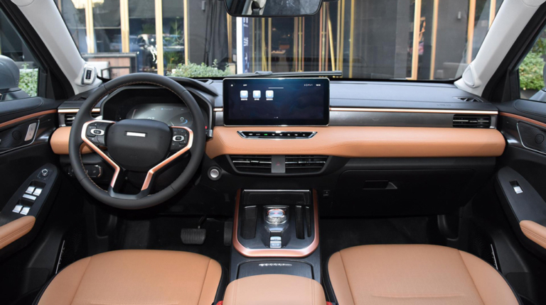Салон Haval Chulian получился стильным и современным. На передней панели практически нет физических кнопок, а в оснащение вошла цифровая приборная панель и мультимедийная система с 10,25-дюймовым экраном (в топовых версиях его размер достигает 12,3 дюйма). Есть также крупный проекционный дисплей, а на смену традиционному рычагу КПП пришла шайба. Также модель получила широкий перечень систем помощи водителю и камеру, которая следит за состоянием водителя.