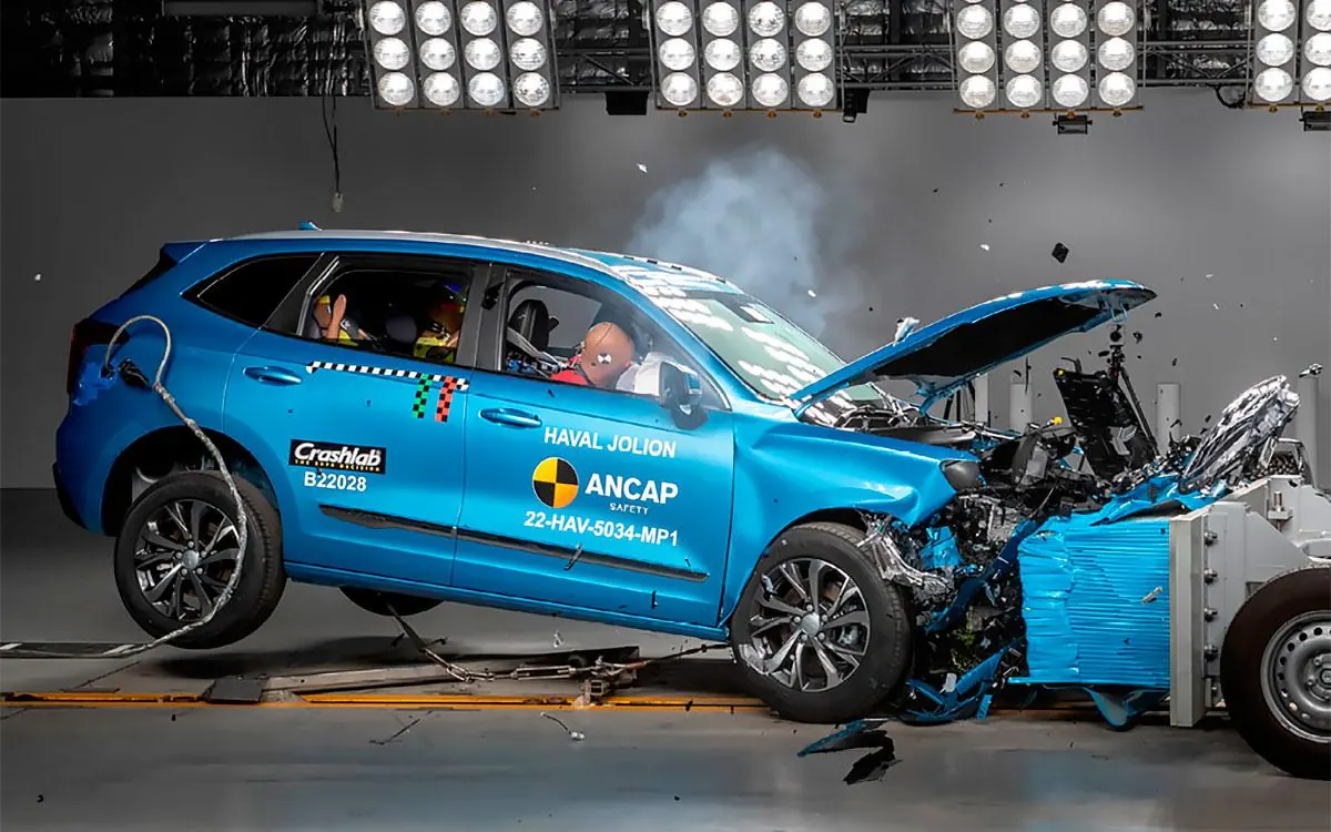 У прототипа узкая передняя оптика, дополненная длинными «клыками», которых нет у актуального H6 третьего поколения. Форма и рисунок решетки радиатора другие. Теперь это не сетка, а хромированные горизонтальные «штрихи». Ниже виден аналогично оформленный черный передний бампер, но без хрома.