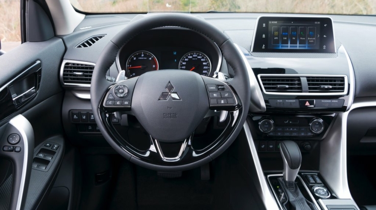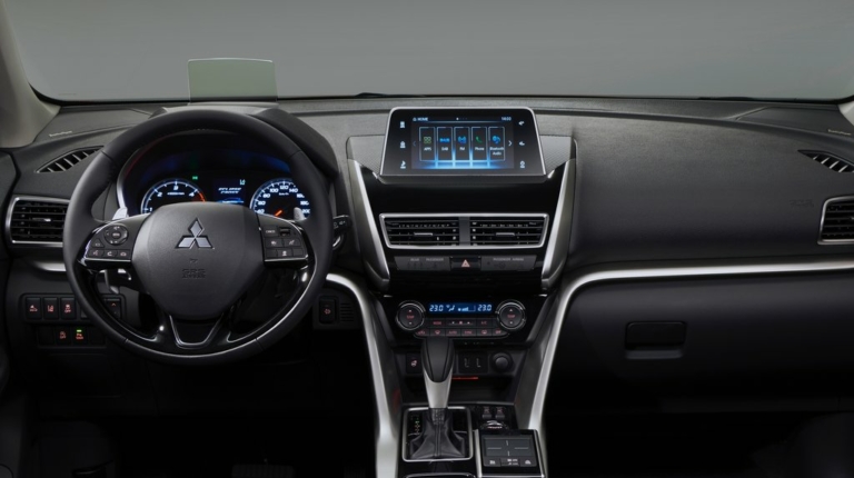 Интерьер Mitsubishi Eclipse Cross получил мультимедийный комплекс с «выдвижным» экраном, управление которым осуществляется с помощью сенсорной панели (справа от рычага КПП). Предусмотрена поддержка смартфонов (Apple iOS и Android).