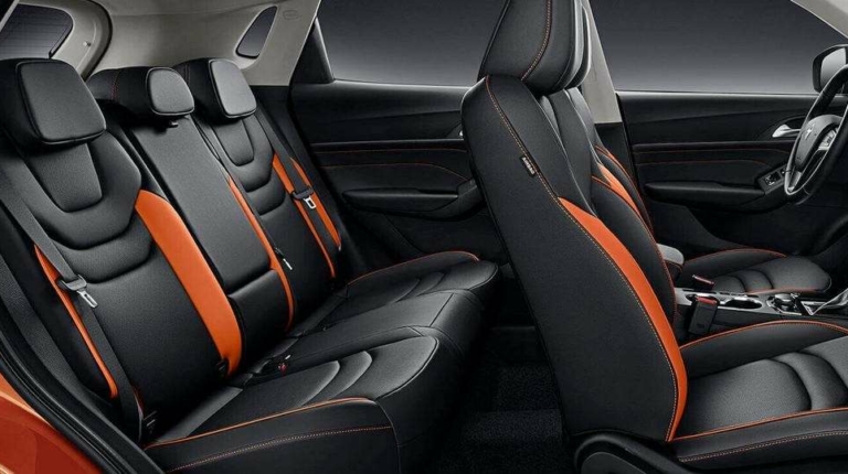 Отделка салона разбавлена яркими вставками. В более дорогих версиях предусмотрена виртуальная панель приборов. Китайский кроссовер в базовой версии оснащен кондиционером, парктроником и электроприводом пятой двери. В топовом варианте есть климат-контроль, люк в крыше и камеры 360-градусного обзора.