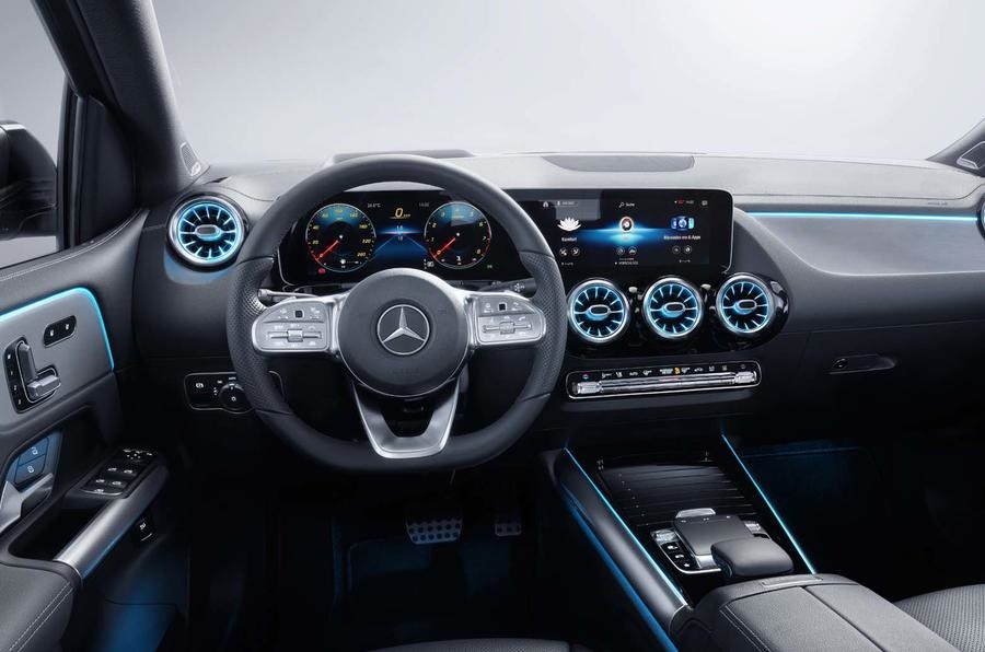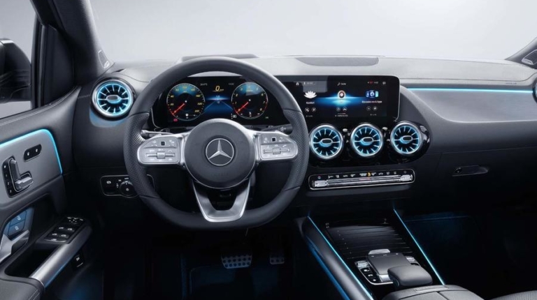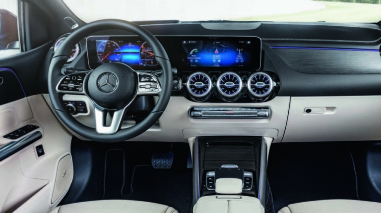 Интерьер модели также напоминает о новом А-классе и щеголяет цифровой панелью приборов и экранами, размерами от 7 до 10,25 дюймов (в зависимости от комплектации). Также в качесвте опции доступен и head-up дисплей.