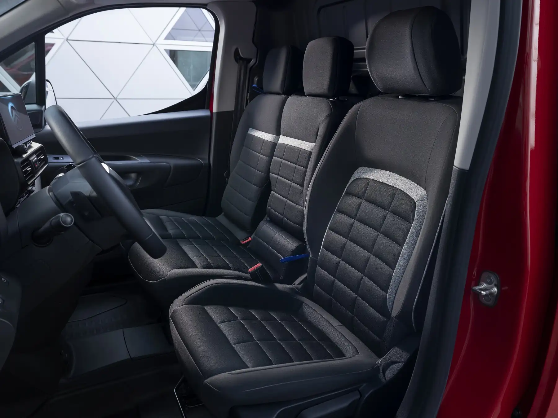 Салон предлагает комфорт и уют легкового автомобиля. Передняя панель выполнена из высококачественных материалов, а отделка для сидений Curitiba+Brasilia создает ощущение домашнего уюта. Кроме того, Berlingo обеспечивает удобный доступ к современному цифровому миру благодаря новой мультимедийной системе с 10-дюймовым дисплеем, а также поддержке технологий Android Auto и Apple CarPlay с беспроводным соединением.