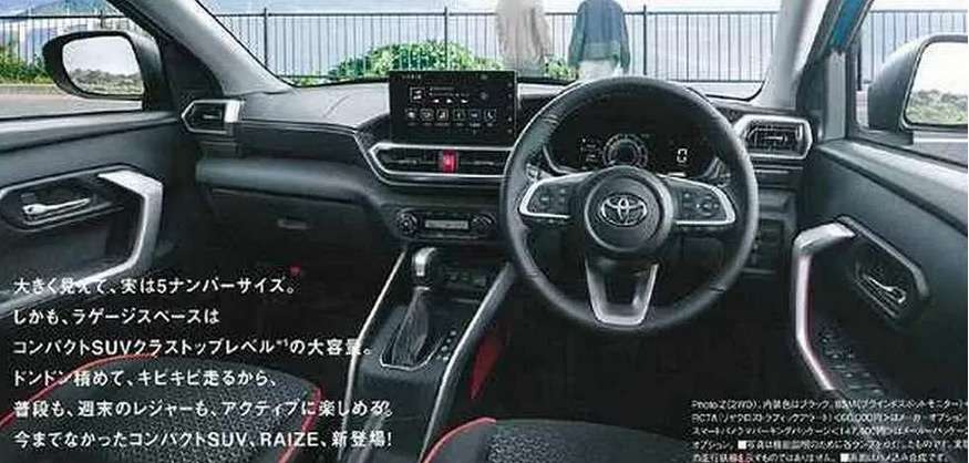 Помимо фоток экстерьера также рассекретили изображения салона Toyota Raize, которые заполучили из брошюры для японского рынка. На картинке можно рассмотреть достаточно крупный экран мультимедийной системы и цифровую панель приборов.