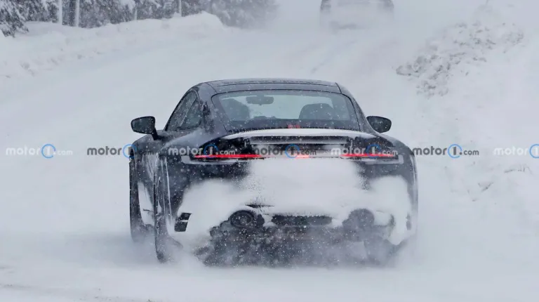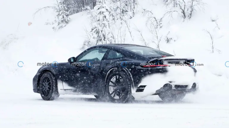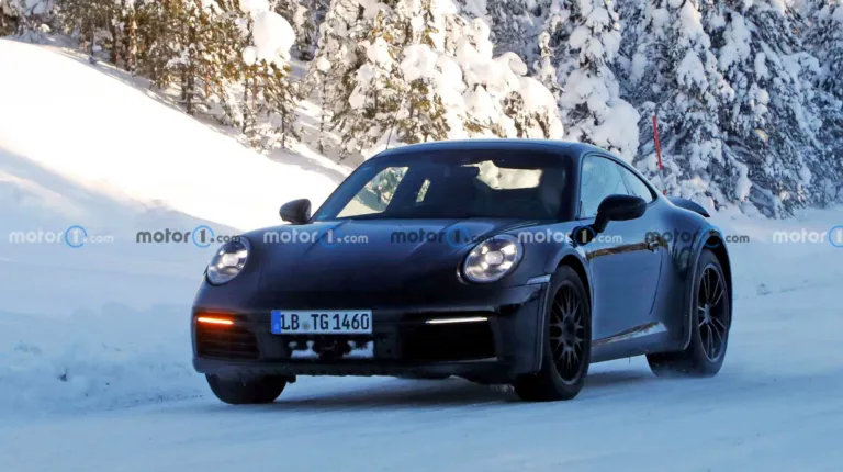 Издание Motor1 опубликовало шпионские фотографии прототипа новой, еще не анонсированной версии спорткара Porsche 911. Его заметили во время зимних испытаний. От остальных представителей семейства внедорожный 911 отличается модифицированными бамперами, увеличенным дорожным просветом и массивными колесными арками, под которыми прячутся «зубастые» шины.