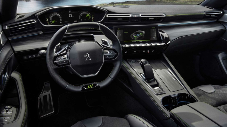 Салон Пежо 508 Sport Engineered оформлен в фирменной архитектуре Peugeot i-Cockpit и полностью ориентирован на водителя. В оснащение вошло компактное рулевое колесо, цифровая приборная панель с проекционным дисплеем, мультимедийная система с крупным экраном, аудиосистема Focal. Также новый плагин-гибрид Пежо отличается высоким уровнем безопасности. В перечень электронных помощников водителю вошли адаптивный круиз-контроль, система удержания в полосе движения, экстренное торможение и система ночного виденья. Отделка выполнена из кожи, которая сочетается с трехмерной сетчатой 3D-тканью и алькантарой.