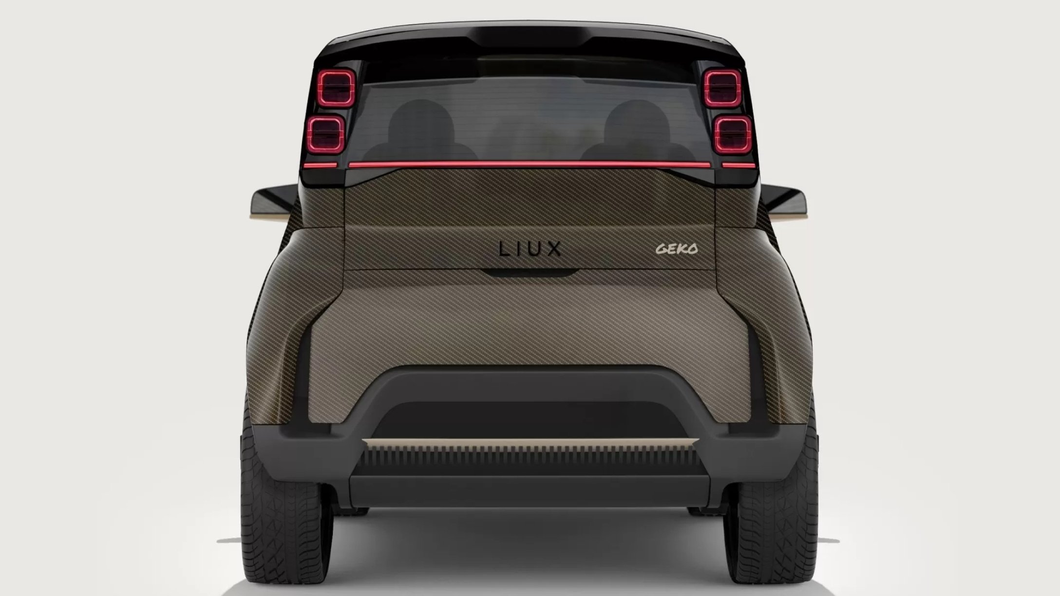 Очевидно, ставку делают на экологически чистые материлы: натуральные смолы, растительные волокна, дерево, биополимеры и биокомпозиты. Кузов Geko, как и Animal изготовлен из композита на основе льняных волокон. Основой для сити-кара послужила простенькая платформа из «конвенциональных» материалов (металлического сплава). Корпус съёмной модульной батареи изготовлен из композита на основе природных материалов. Заявленная снаряженная масса Liux Geko — 550 кг.