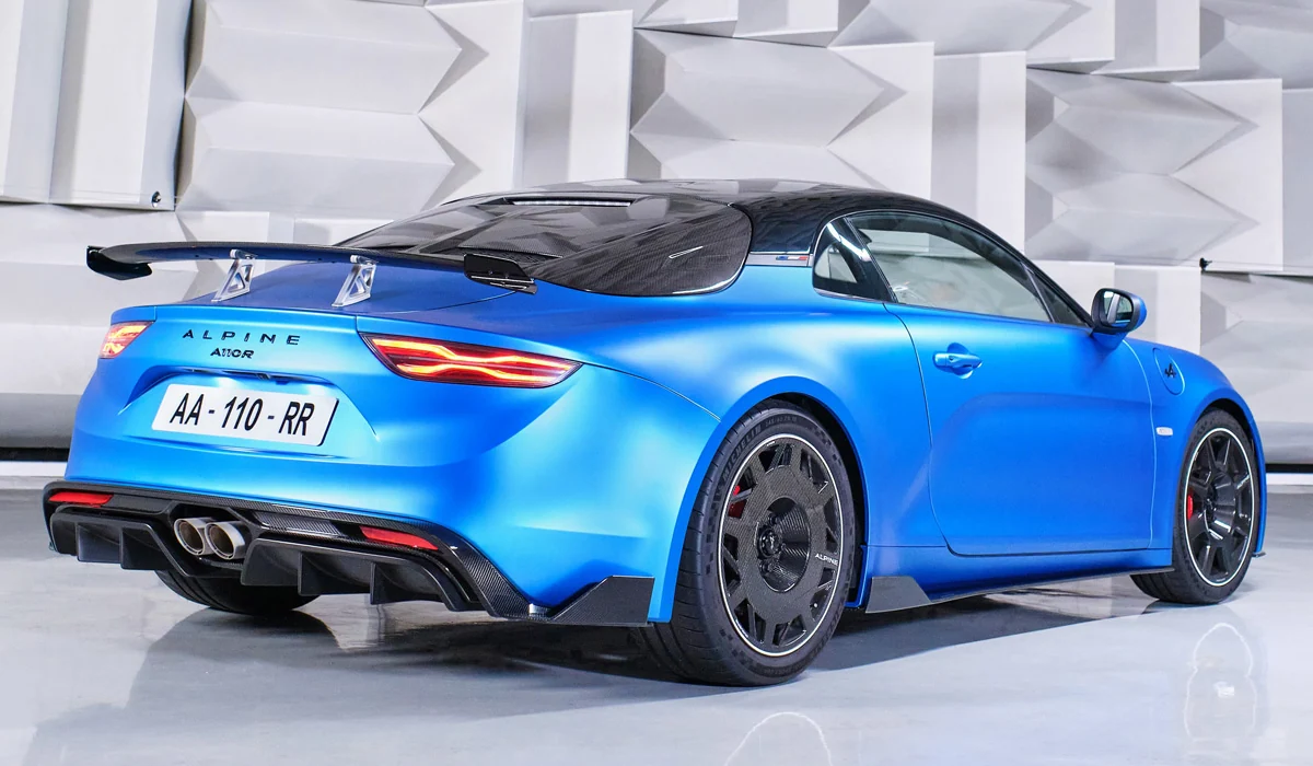 Новинка построена на базе купе Alpine A110 S, которое стоит почти в полтора раза дешевле (от 72,5 тыс. евро). Столь существенная разница в стоимости поясняется улучшенной аэродинамикой. В частности, для Alpine A110 R оптимизировали форму воздухозаборников, добавили защиту днища, установили штатное антикрыло на корме и миниатюрные спойлеры на рычагах задней подвески. В результате аэродинамическое сопротивление уменьшилось на 5%, а прижимная сила на максимальной скорости увеличилась на 29 кг.