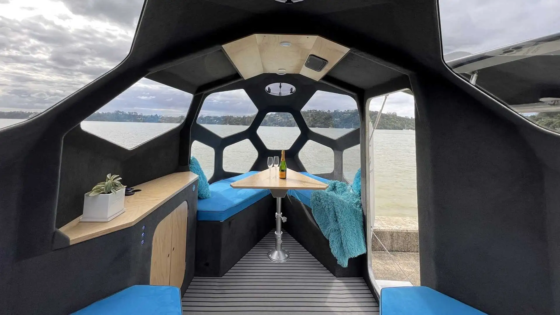 Как утверждают в компании, V-образные зоны для сидения прототипа могут вместить до 12 взрослых. Под сидениями — два выдвижных стола и места для хранения вещей. Также сиденья можно использовать как кровати. Перемещается POD на лодочном прицепе. На крыше «куба» — проушины, за которые его можно поднять краном или вертолетом.
