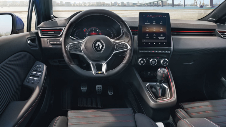 О салоне нового хетча Рено мы уже говорили, поэтому отметим лишь, что здесь куда больше изменений: в частности, появился большой экран мультимедиа, цифровой приборный щиток размером до 10 дюймов, новые сиденья и др.