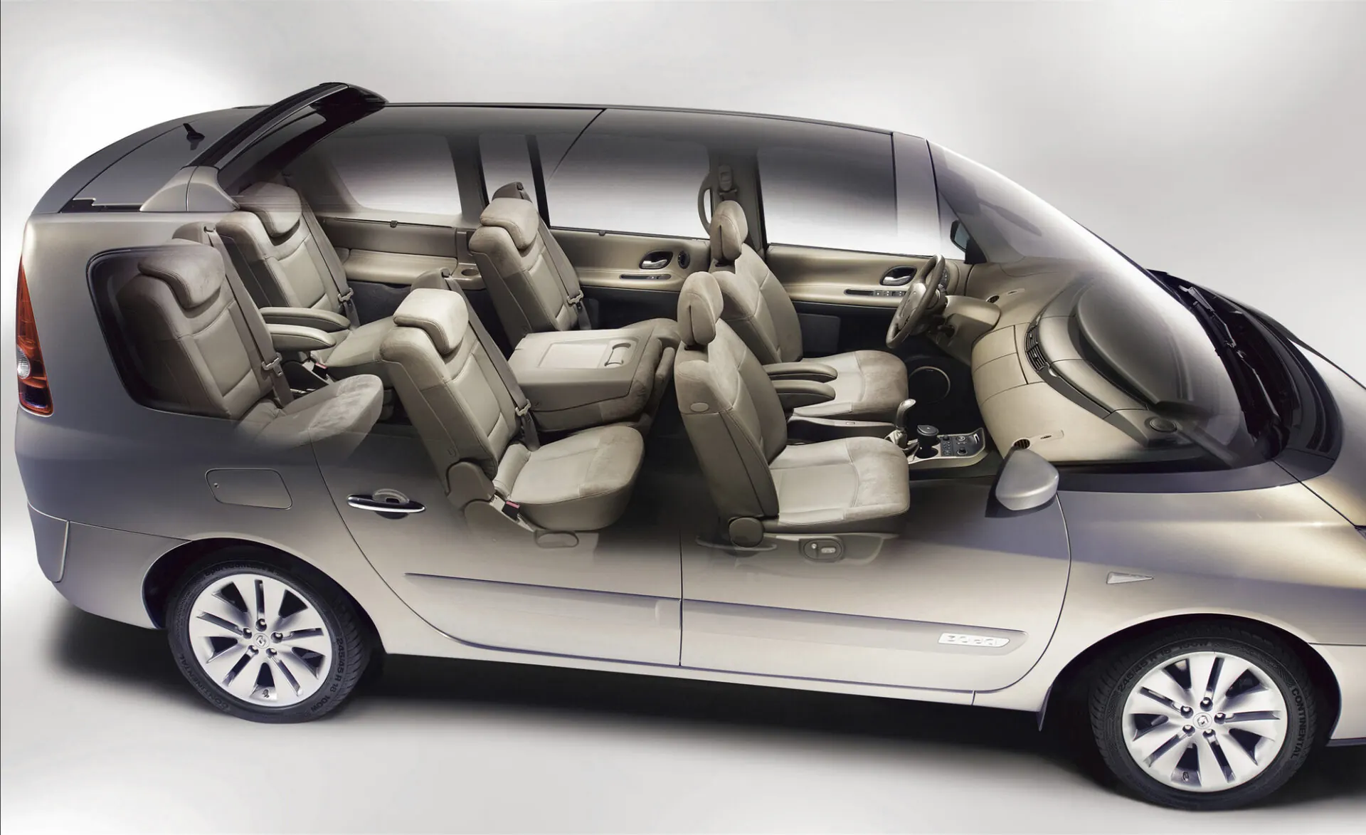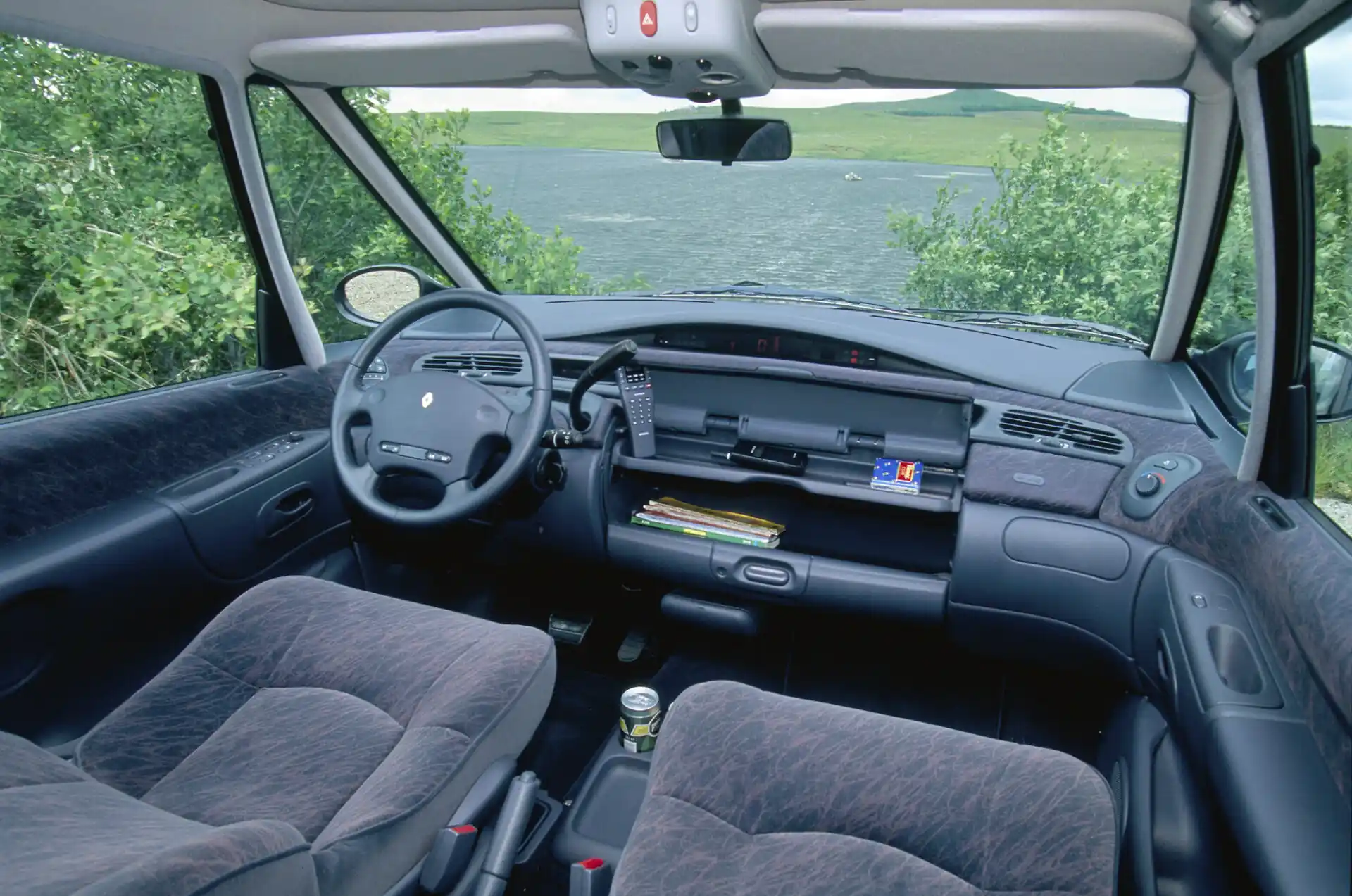 Espace пошел в производство в 1984 году и покорил многих своим однообъемным кузовом и супер-трансформируемым салоном. Два передних кресла могли вращаться, а пять остальных складываться или вовсе сниматься, что существенно увеличивало багажный отсек. Автомобиль также выделялся большой площадью остекления и установкой самых мощных в линейке двигателей.