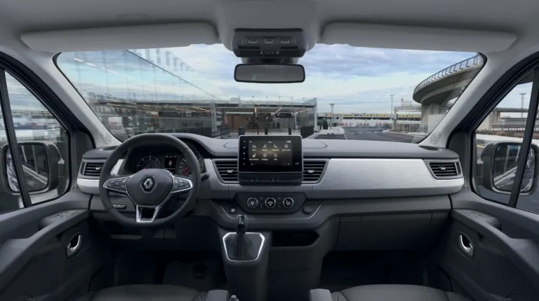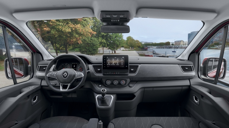 Салон Renault Trafic также не обошли изменения. Причем производитель не стал ограничиваться точечными переработками, а полностью пересмотрел внутреннюю архитектуру. В результате интерьер стал комфортнее, просторнее и может разместить до 9 человек. В оснащение вошла новая приборная панель, мультимедийная система Easy Link с 8-дюймовым вертикальным экраном и навигацией, которая совместима с Android Auto и Apple CarPlay. Также модель получила новый мультируль, иной рычаг переключения передач и слот для беспроводной зарядки смартфона.
