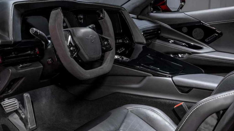 В салоне установлен руль в виде штурвала и отсутствует панель с физическими кнопками между водителем и пассажиром, как у Corvette. Отделка кабины Rezvani Beast выполнена из высококлассной кожи и алькантары, а в качестве декора использован карбон.