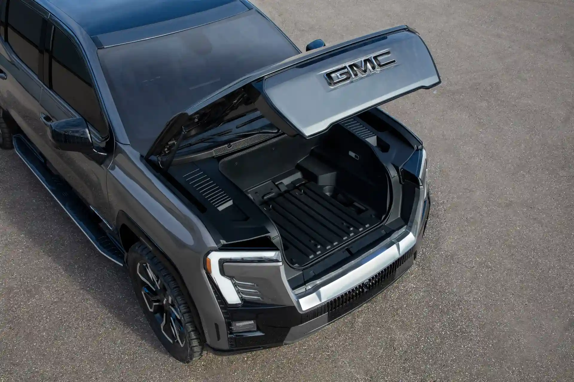 Электрический пикап построен на платформе Ultium, как и Silverado EV, и внешне очень схож с родственной моделью. У новинки широкая заглушка с подсветкой на месте решетки радиатора, изогнутые светодиодные ДХО, небольшие вертикальные фары, мускулистый капот и агрессивный бампер с защитной накладкой. На корме можно отметить крупные фонари и массивный бампер. Есть выдвижная подножка, а колесные арки с темными накладками скрывают 24-дюймовые колеса.