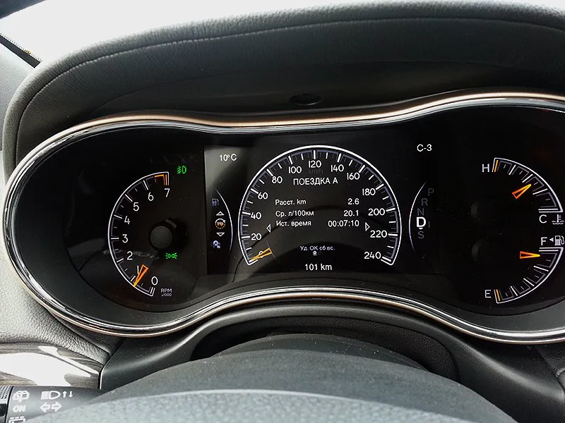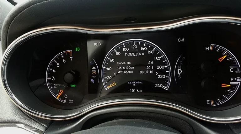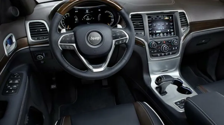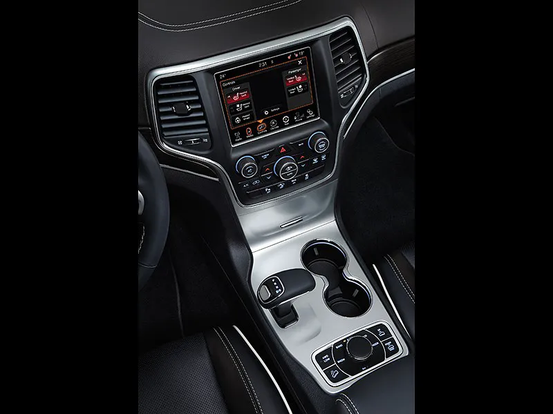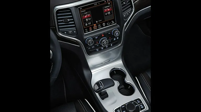 Кроме того, огромный переключатель находится на центральном тоннеле. Кнопки и переключатели не смотрятся громоздко и вполне органично вписались в интерьер Джип Гранд Чероки. Современности добавляют широкие вентиляционные отверстия, расположенные в верхней части приборной панели. Они выглядят изысканно и идеально сочетаются с матовыми деревянными панелями и кожаными элементами, которые используются в отделке.