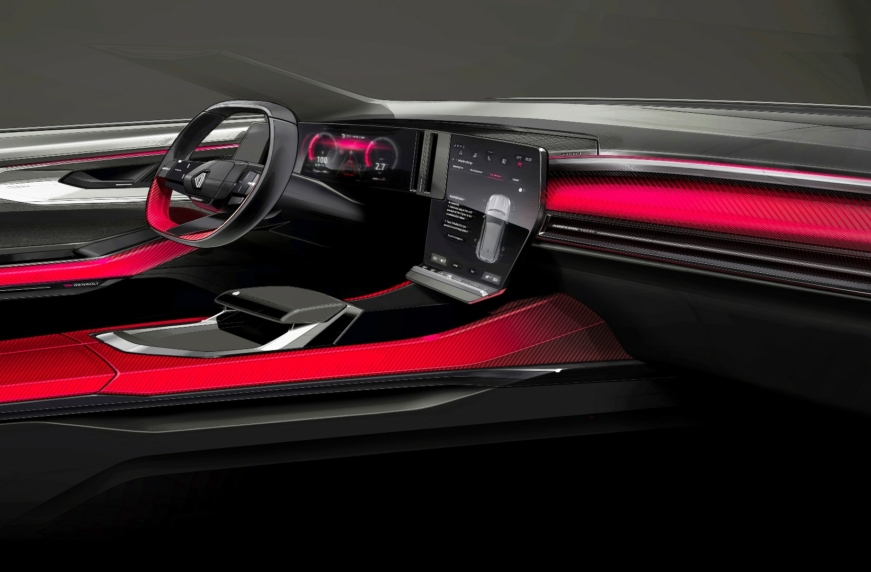 Судя по изображению, кроссовер получит цифровую приборную панель и мультимедийную систему с крупным экраном, который имеет портретную ориентацию. Дисплеи визуально объединены между собой, создавая L-образный водительский интерфейс, общий размер которого составляет 24,3 дюйма. Аналогичное решение реализовано в новом Megane E-Tech Electric.