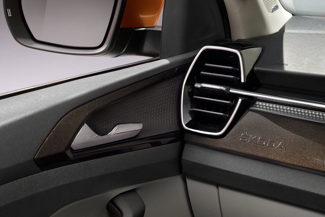 Внутри дизайнеры постарались не меньше. Передняя панель выглядит очень стильно и сочетает в отделке материалы разной фактуры и цветов. В топовых исполнениях покупатели получат «кожаные» кресла, в передних даже предусмотрена вентиляция. Также доступны беспроводная зарядка для смартфона, 10-дюймовый монитор мультимедиа, сенсорный блок управления климатом, охлаждаемый перчаточный ящик и масса отделений и карманов для мелочевки. Интересно, что в целом похожая передняя панель и некоторые решения оформления интерьера вскоре появятся в новой Skoda Fabia, которую готовят к премьере.