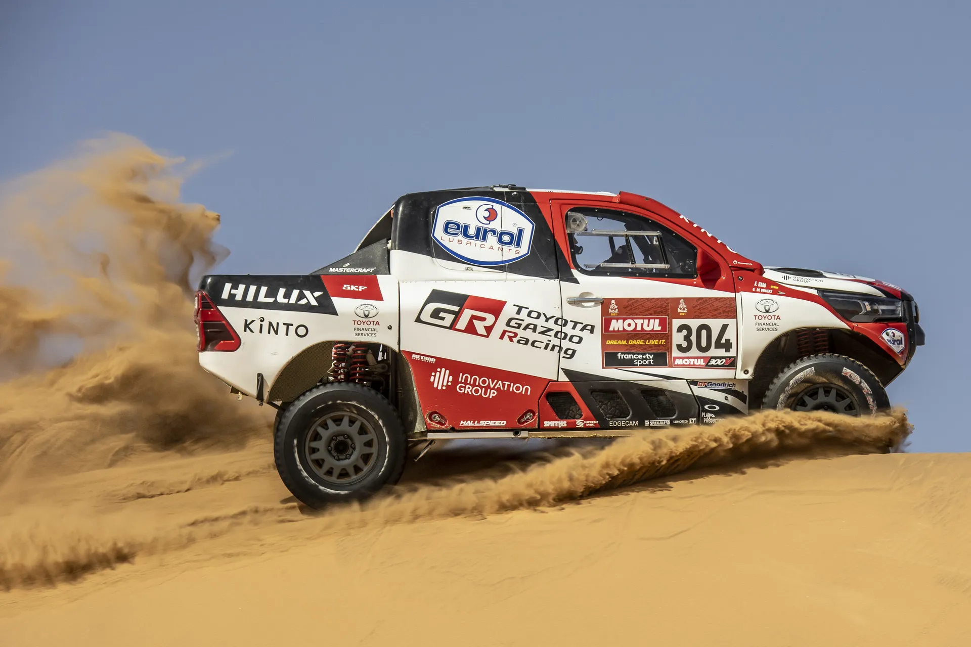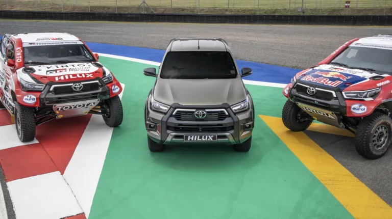 Уже восемь лет команда Toyota Gazoo Racing выезжает на Дакар на модифицированных пикапах Hilux, которые отличаются превосходной выносливостью и проходимостью. Для гонки на выживание 2021 года, которая пройдет в Саудовской Аравии, также подготовили четыре внедорожника Тойота этой модели. Их оснастили доработанным 5,0-литровым атмосферным двигателем V8 мощностью около 400 л.с., полностью независимой подвеской и полным приводом. Также автомобили получили модифицированную внешность и облегченные кузова.
