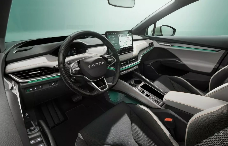 Кроссовер достигает в длину 4488 мм при колесной базе 2765 мм. Ширина и высота составляют 1884 и 1625 мм соответственно. То есть новинка на 98 мм длиннее Karoq. Аэродинамический коэффициент Elroq – 0,26. Салон просторный и оснащен в соответствии с последними тенденциями в сегменте. В него вошла цифровая приборная панель, мультимедийная система с 13-дюймовым экраном, рулевое колесо с надписью Skoda. Еще есть голосовой помощник Laura с интеграцией ChatGPT.