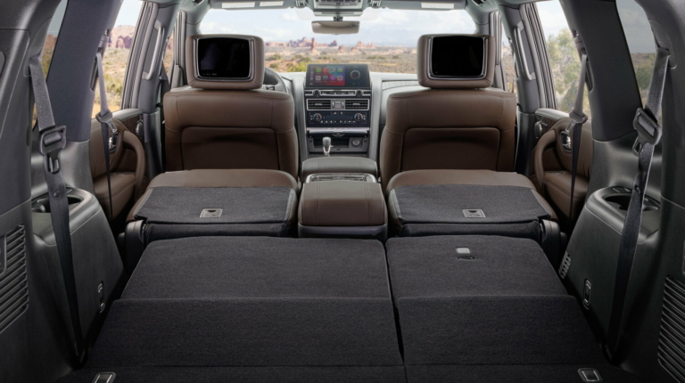 В салоне Nissan Armada 2021 – новая мультимедиа с диагональю 12,3-дюйма, которой производитель попытался скрыть солидный возраст внедорожника. Система поддерживает Apple CarPlay. Также отдельно стоит выделить появление современных разъемов USB Type-C и точки доступа Wi-fi. Новый Ниссан Армада получил отличную от Patrol центральную консоль.