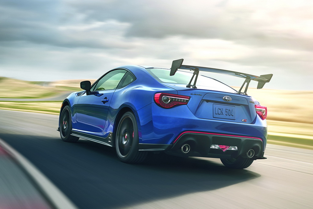 Агрессивный облик купе придают эксклюзивные передний и задний спойлеры STI из углепластика, причем задний можно регулировать для изменения величины прижимной силы. Как и WRX STI Type RA, купе BRZ tS легко отличить от собратьев по декоративной красной отделкой решетки радиатора и заднего бампера.