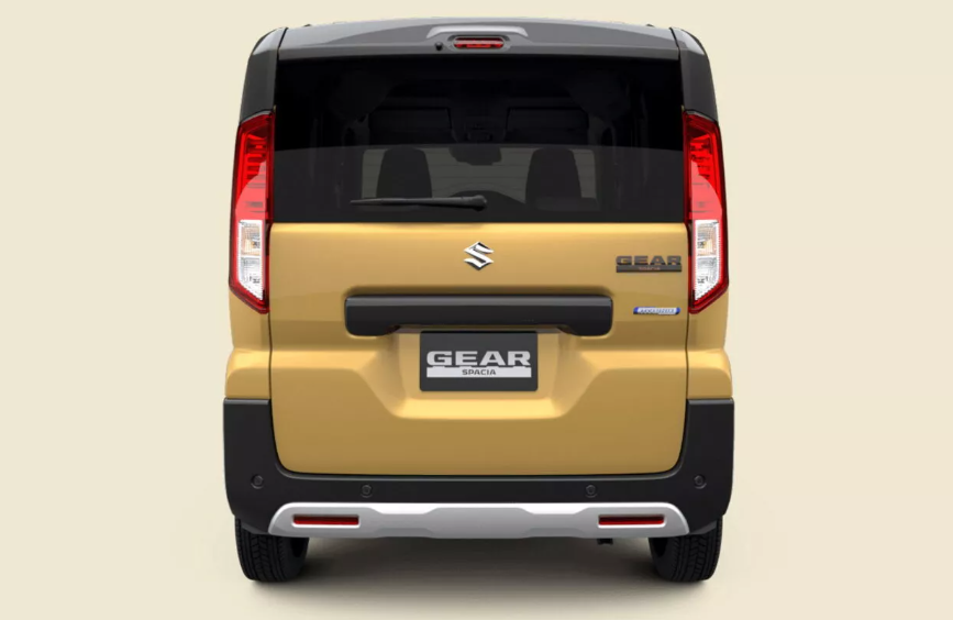 Новый Spacia Gear отличается от других представителей семейства внедорожным дизайном, напоминающим ранние Jimny. Модель достигает в длину 3,4 метра и получила широкую решетку радиатора, круглые фары и массивный бампер с крупным воздухозаборником. Можно отметить наличие у кей-кара защитных пластин и пластикового обвеса на кузове. Ездит он на 15-дюймовых легкосплавных дисках, окрашенных в серый цвет, а на крыше установлены рейлинги.
