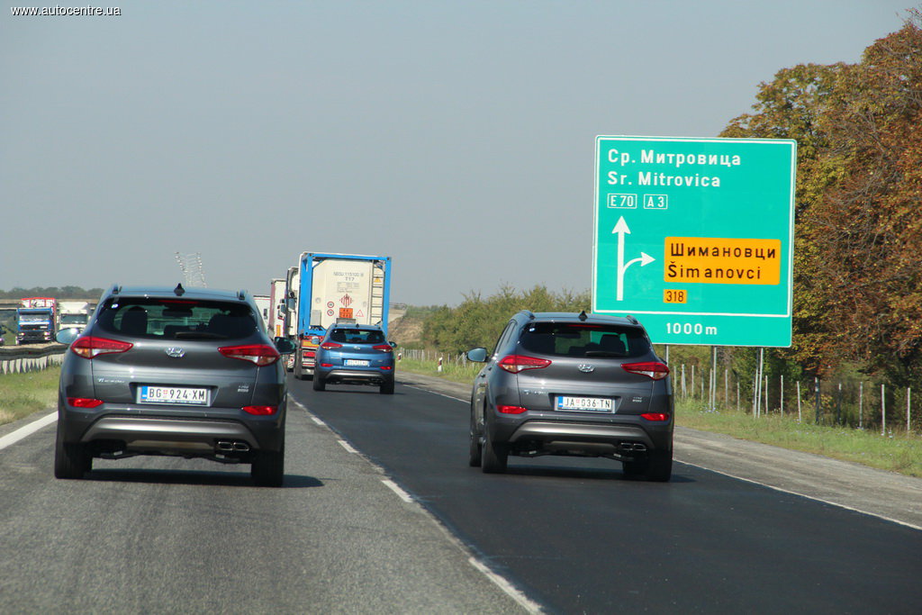Пока не будем рассуждать на тему внешности Hyundai Tucson третьего поколения. Очень похож на Santa Fe? Да ничего страшного, тем более что во внешности «Тусана» есть много оригинальных и свежих моментов. А благодаря более компактному размеру «Тусанчик» выглядит очень гармоничным и сбитым. Таков он и в ходу. И, да, тоже напоминает старшего брата. Но только более юркий, на плотной подвеске, которая даже с 19-дюмовыми колесами очень лояльна к сербским дорогам.