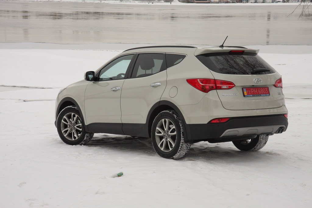 Подвеска по-прежнему не балует комфортом, но уверенно справляется с ледяными надолбами и разбитым асфальтом. Вне ровных дорог на заметенных проселках Hyundai Santa Fe III позволяет ехать достаточно быстро, временами мягко и уверенно душить обороты мотора. Межосевая муфта незаметно и быстро подключает задние колеса, и автомобиль уверенно расправляется со снежной целиной и подъемами.