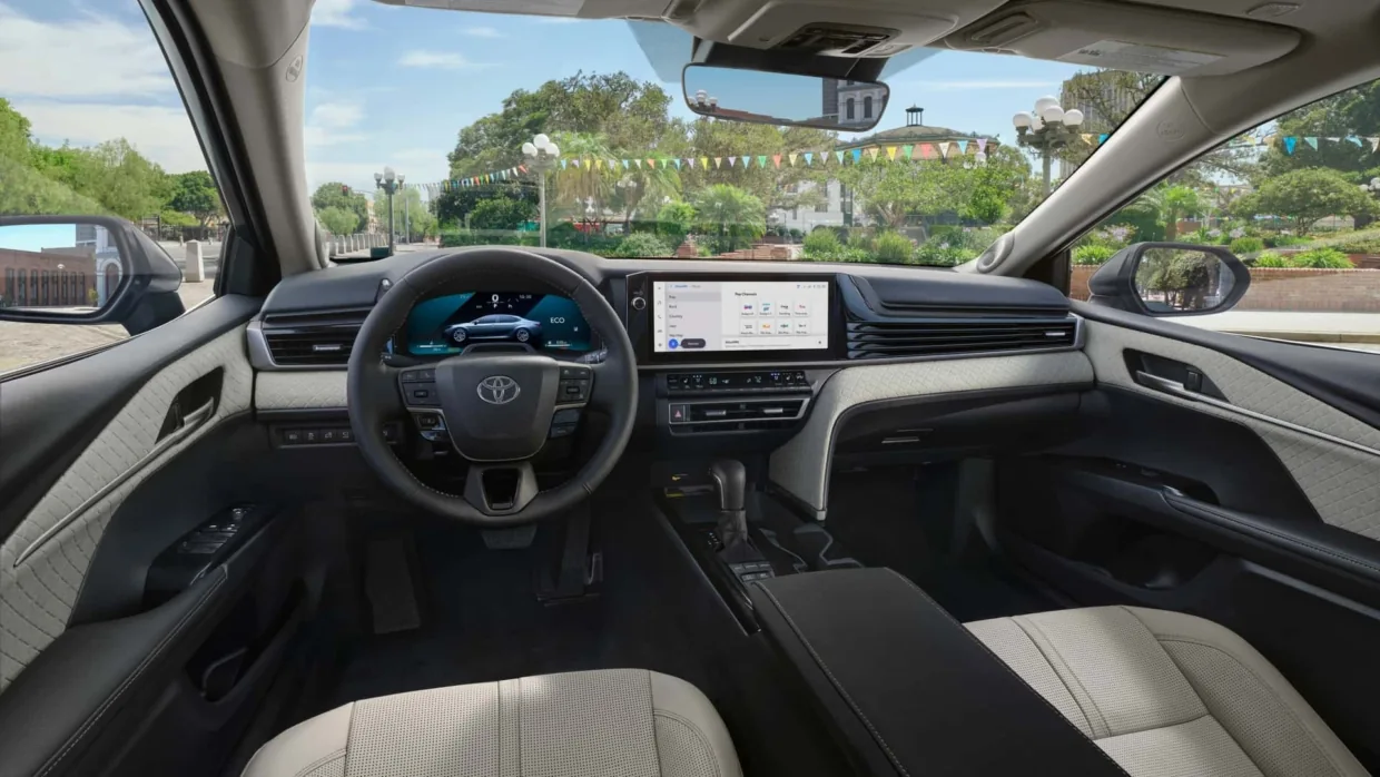 Комплектации XLE и XSE оснащены двумя дисплеями диагональю 12,3 дюйма (панель приборов и мультимедийка), 10,0-дюймовым проекционным экраном, сиденьями с подогревом и вентиляций. За доплату седан укомплектуют стереосистемой JBL с девятью динамиками. Плюс к этому для снижения шума в салоне в передних боковых окнах установлено акустическое многослойное стекло. В комплектации XLE интерьер отделан кожей черного ли ярко-красного цвета, в XLE -микрофиброй Dinamica.