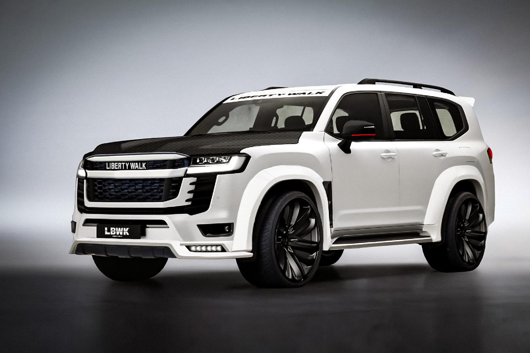 Для нового внедорожника Toyota land Cruiser 300 подготовили набор визуальной доработки. Комплект включает расширители колесных арок, боковые пороги, диффузор, накладки на бамперы и патрубки. Ленд Крузер в доработке от Liberty Walk становится дороже на 17 810 долларов.