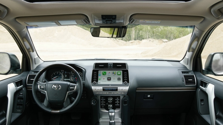 Помимо мощного двигателя, новый Тойота Прадо 2021 получил мультимедийную систему с усовершенствованным программным обеспечением, сенсорным экраном и поддержкой Apple CarPlay и Android Auto. Также производитель расширил пакет помощи водителю – теперь он включает систему экстренного торможения с функцией обнаружения пешеходов и велосипедистов в ночное время, а также интеллектуальный адаптивный круиз-контроль.