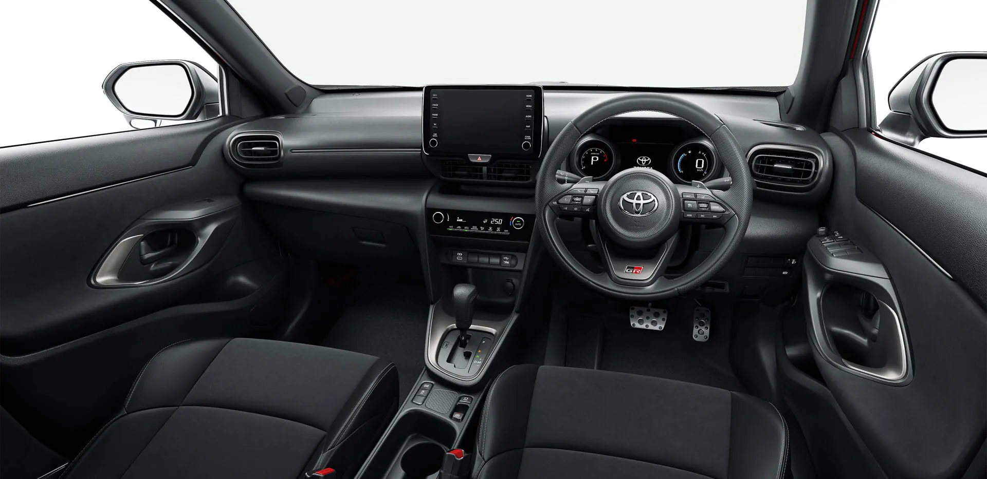 В салоне — спортивные передние сиденья с развитой боковой поддержкой, обтянутые замшей и искусственной кожей. Также на спортивный характер указывают алюминиевые накладки на педали и трехспицевое мультифункцинальное рулевое колесо с логотипом «GR» в нижней части.