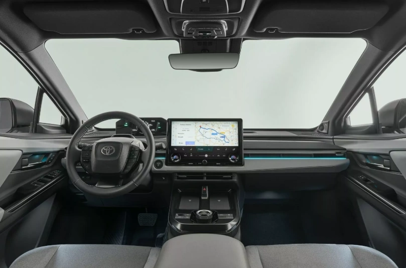 В длину Toyota C-HR+ достигает 4520 мм при колесной базе 2750 мм. То ест новина на 160 мм длиннее авто без индекса «плюс», а расстояние между осями на 110 мм больше модели, работающей на бензине. Данный прирост отразился на салоне C-HR+, который стал просторнее и комфортнее. В оснащение вошла цифровая приборная панель, мультимедийная система с 14-дюймовым экраном, система климат-контроля, слот для беспроводной зарядки смартфона и широкий список систем помощи водителю. Крыша – панорамная.