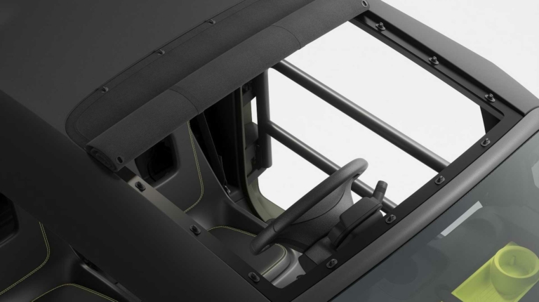 Еще одна «фишка» серийного My Ami Buggy — откидная брезентовая крыша. Подобное решение отсылает в легендарной малолитражке, выпускавшейся в 1948-1990 годах. На кузове и в салоне электромобиля сохранились ярко-желтые акценты, хотя и не в таком количестве, как у концепта.