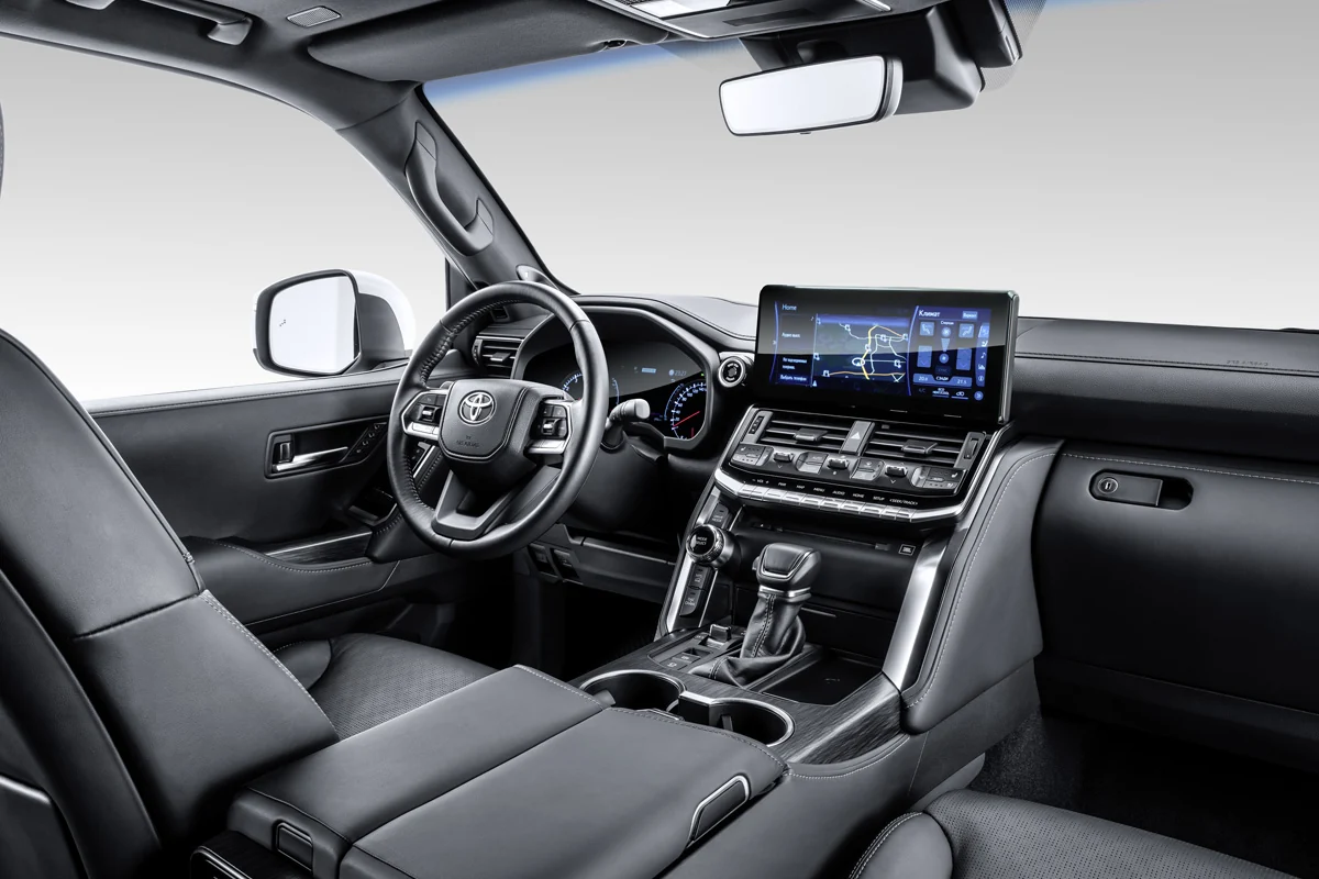 В стандартное оснащения внедорожника нового поколения вошли фирменный комплекс активной безопасности Toyota Safety Sense, системы удержания полосы движения и обнаружения пешеходов. Также в активе Toyota Land Cruiser 300 функция допуска по отпечатку пальца.