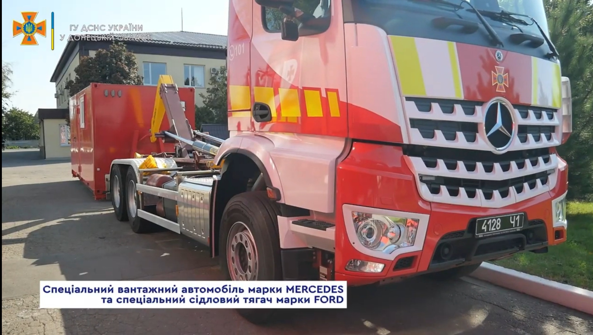Государственная служба чрезвычайных ситуаций в Донецкой области пополнилась на днях двумя очень интересными грузовыми автомобилями – Ford Trucks и Mercedes-Benz Arocs.
